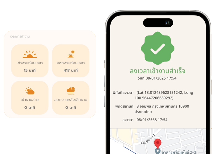 be STAMP ลงเวลาเข้า-ออกงาน HR และหัวหน้ารู้ทันความเคลื่อนไหว ไม่ต้องรอถามรายคน ทดลองใช้ฟรี 30 วัน พนักงาน ใช้งานง่ายผ่านมือถือ ไม่ต้องแตะบัตร ไม่ต้องไปถึงบริษัท แค่มีสมาร์ตโฟนก็ลงเวลาเข้า–ออกงานได้ทันที พนักงานฝ่ายบุคคล ใช้คำนวณเงินเดือนได้ทันที ข้อมูลเข้าอัตโนมัติ ไม่ต้องรวบรวมข้อมูลจากหลายแหล่งให้วุ่นวาย หัวหน้างาน รู้ทันข้อมูลขาด ก่อนกลายเป็นปัญหา ตรวจเช็คสถานะทีมแบบเรียลไทม์ เห็นเวลาการทำงานของทีมในแต่ละวันได้ชัดเจน เลือกวิธีลงเวลาที่เหมาะกับองค์กรของคุณ GPS ระบุรัศมี และพิกัดพื้นที่ลงเวลา Wi-Fi Zone ลงเวลาได้เฉพาะเครือข่าย Wi-Fi ที่กำหนด Face Scan ถ่ายใบหน้าตัวเองเพื่อยืนยันตัวตน QR Code สแกนที่จุดกำหนดในออฟฟิศหรือสาขา จำกัดรัศมีวงรอบได้ กำหนดพิกัดตำแหน่งกลาง พร้อมระบุระยะทางรอบข้าง ใครอยู่นอกพื้นที่ ไม่สามารถลงเวลาได้ เริ่มต้นใช้งานง่าย ยกเลิกได้ทุกเมื่อ ไม่มีบวกเพิ่ม! ทดลองใช้ฟรี 30 วัน