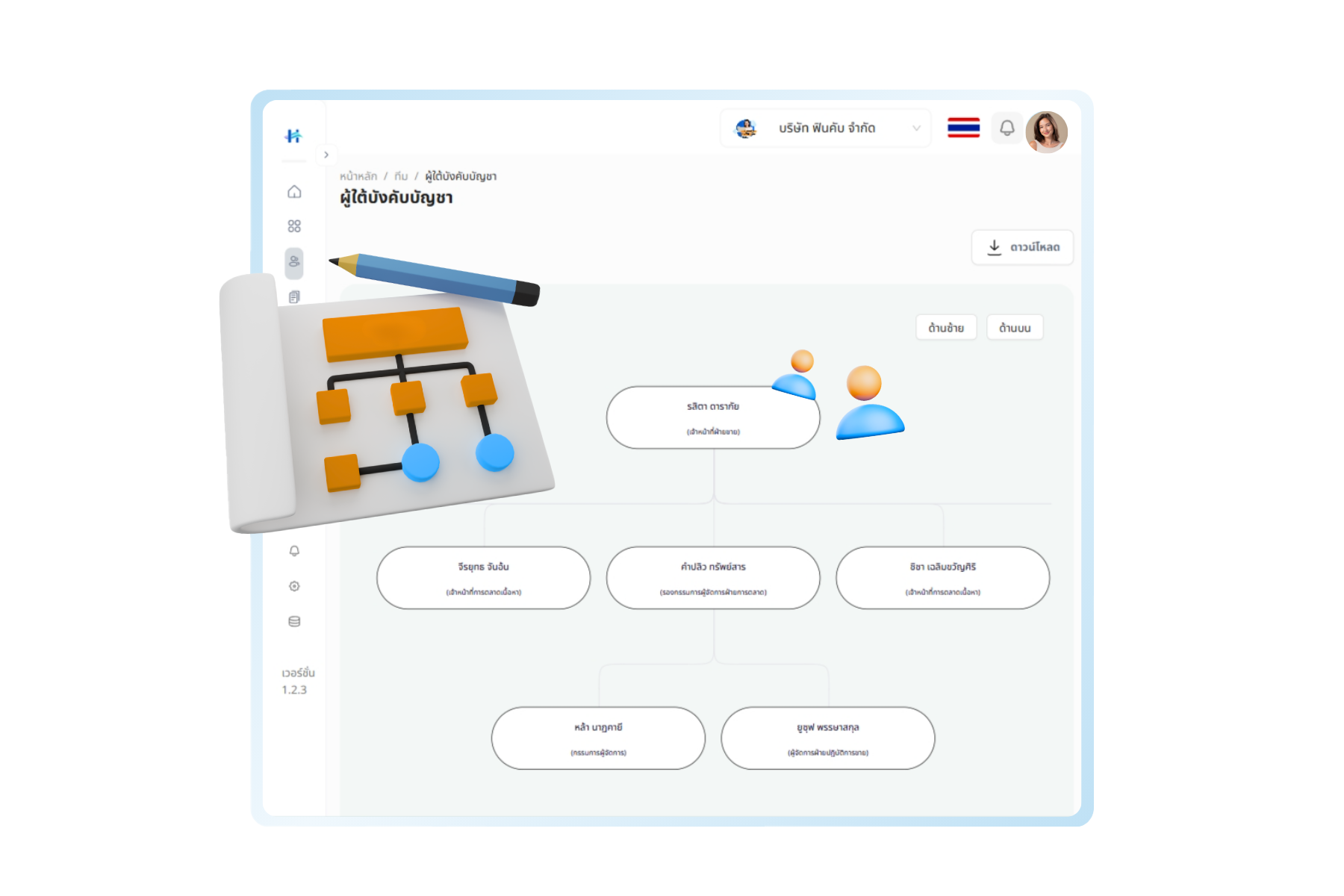 แสดง Organization Chart เข้าใจง่าย เห็นความเชื่อมโยงของแต่ละตำแหน่งในองค์กร ให้ผู้บริหารและ HR วางแผนโครงสร้างและเส้นทางการเติบโตของพนักงานได้ชัดเจน