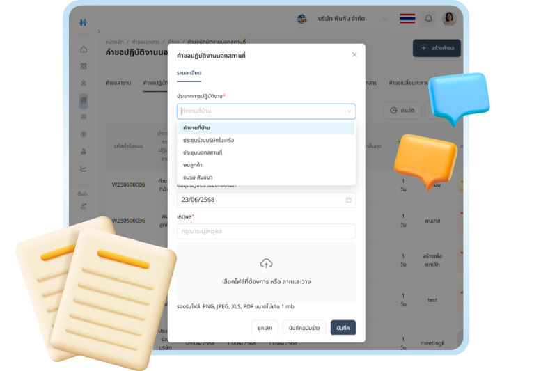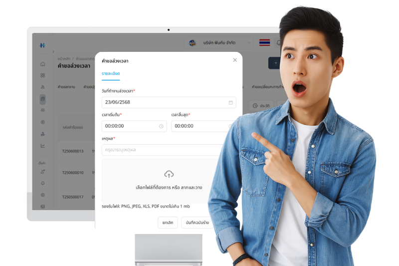 พนักงานขอลา OT เอกสาร หรือแม้แต่วันพักร้อนได้ง่าย ๆ ผ่านระบบ ไม่ต้องเดินเรื่อง ไม่ต้องรอเซ็น วิ่งไล่หัวหน้าให้วุ่น "ยื่นเอง รู้ผลทันที"