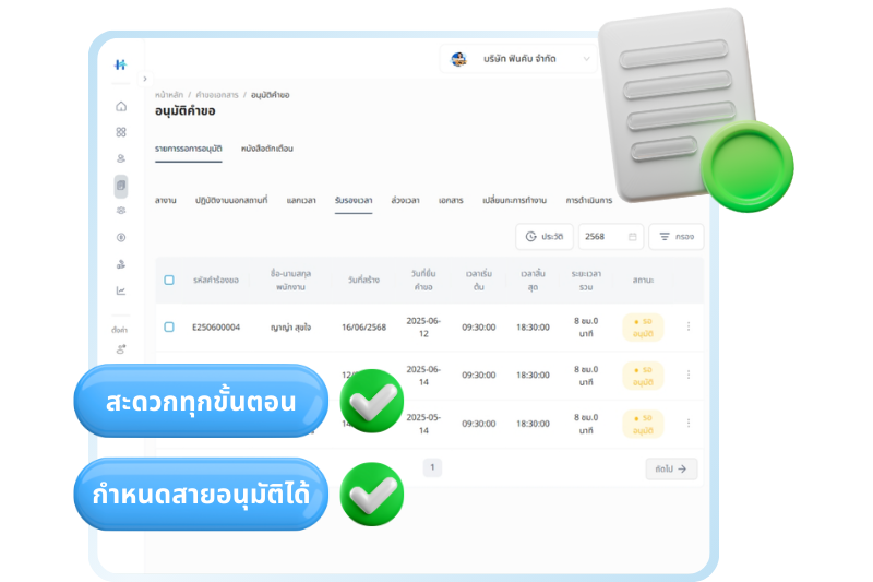 อนุมัติได้บนเว็บ ไม่ต้องเดินเอกสาร ประหยัดเวลาทั้งหัวหน้าและพนักงาน ทุกขั้นตอนเร็วขึ้นแบบทันใจ